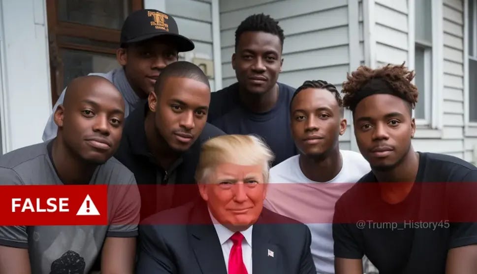 Trump Allies: In 2024, his supporters circulated AI-generated photos of Trump smiling with young Black men, falsely described as real campaign moments. The goal was to soften his image and make him look more inclusive than his record ever showed. Verdict: DEEPFAKE